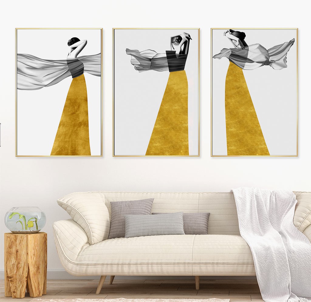 Bộ 3 Bức Cô Gái Váy Vàng