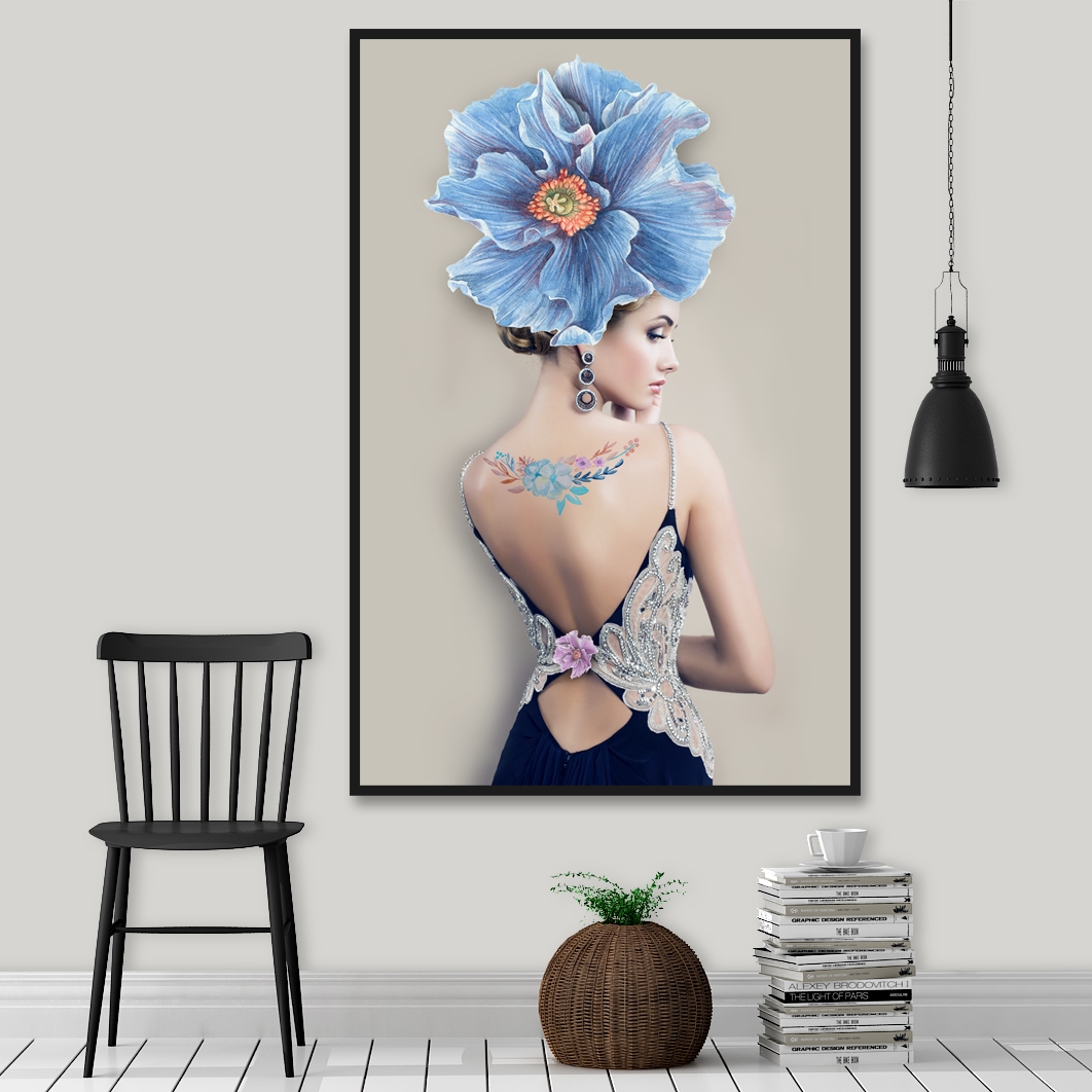 Tranh Chân Dung Cô Gái Dịu Dàng Và Cánh Hoa